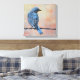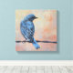 Los pájaros voladores de montaña son bastante comunes en las estaciones de primavera y verano en las regiones montañosas de Colorado y Wyoming. Los machos son especialmente coloridos, y la brillante racha de azul brillante es difícil de perder a medida que se atreven. Esta imagen es de una pintura al óleo original de la galardonada artista Colorado Debra Mickelson.
