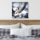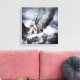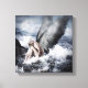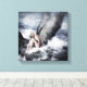 bella mujer rubia con alas de ángel sentada sobre una roca en el mar en tormenta
