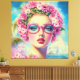 Este ilustracion de ensueño de inspiración retro cuenta con una mujer glamurosa con gafas de sol rosas de gran tamaño y una florida gorra de natación floral, frente a un tranquilo telón de fondo tropical de veleros y cielos azules. Perfecto para agregar vibraciones de verano vintage y energía femenina audaz a tus productos Redbubble, como arte mural, pegatinas o ropa. Una vibrante celebración de moda costera y fantasía floral.