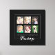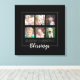 Este lienzo envuelto en cuadrado es un regalo perfecto de corazón para los abuelos. Presenta un collage de 6 fotos para nietos con fondo negro. El moderno texto de estilo escrito a mano dice: "Bendiciones"