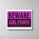 Lienzo BEWARE Chica Power - Rótulo rosado de peligro Meta