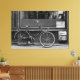 Fotografía de grano de película de alto contraste en blanco y negro de una bicicleta estacionada frente a un escaparate de una tienda en Ámsterdam.