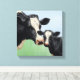 Una vaca Holstein negra madre nutre cariñosamente a su preciosa cría de bebé. Obra de arte realista creada a partir de una pintura al óleo original del artista de la fauna y la flora silvestres Crista S. Forest.