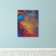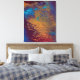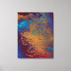 Se trata de un cuadro abstracto fluido que presenta verde azulado, turquesa, violeta, marrón, cobre, oro y magenta