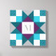 Esta pintura de lienzo tiene el bloque de patrón de tejido Ohio Star en 12"x12" cuadrado en verde azulado profundo, verde azulado claro, gris, morado oscuro y blanco con un monograma de personalizable gris en el cuadrado blanco central. Los cuatro bloques cuadrados exteriores y cuatro de las piezas del triángulo interior tienen patrones en ese momento para crear piezas de tela simulada. Si te gusta el aspecto de las colchas de tela o de los edredones de grano, te encantará este lienzo de pared que puede colocarse sobre un caballete en un mantel con chimenea o colgarlo en cualquier parte de tu casa para que te toque un colorido toque de color. Si quieres esto en una combinación de colores diferente, envía un correo electrónico a niteowlstudio@gmail.com con tu solicitud de color específica y estaré encantado de compensarlo por ti.