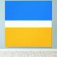 Este elegante y elegante diseño cuenta con dos paneles de colores vivos amarillos y azul acuático unificados con una franja de centro blanco delgada y nítida que recorre horizontalmente toda la longitud del diseño.