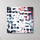 Diseño geométrico, con un conjunto de bloques en blanco, negro y rojo...