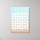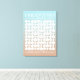 Este libro de invitados personalizable en lienzo es una forma alternativa única de que los invitados dejen un mensaje personal en su día especial en lugar del tradicional libro de invitados. Siluetas blancas de iconos de la playa se alinean en el cartel, con espacio para que 100 invitados firmen sus nombres, iniciales o dejen un pequeño mensaje. Cada silueta mide aproximadamente 2". Los iconos representados son una concha de vieira, una estrella de mar, un pez tropical y un dólar de arena. El fondo es un suave gradiente que se extiende desde un azul de océano aqua fresco hasta un color arena cálido, dando la ilusión de una costa. El texto en la parte superior es personalizable, solo use las plantillas fáciles proporcionadas y luego ajuste la posición y los tamaños de fuente con la opción 'Personalizar'. La cita al final dice "En marea alta o marea baja, estaré a tu lado". Cuando esté completo, tendrá una hermosa pieza de arte