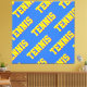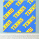 This fun, colorful, sporty design features repeating diagonal bright yellow athletic TENNIS text, drop shadowed in red, against bright blue background.
