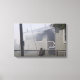 Una impresión de lona que muestra la foto de un bombero de Newkirk en un incendio.
