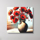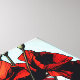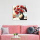 Envases de flores. Camionetas rojas en un jarrón blanco sentado sobre una mesa. personalizados de historietas de bonito.