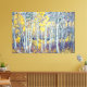 Un denso bosque de álamos llena el marco, su corteza blanca que contrasta marcadamente con las hojas amarillas que cubren el suelo del bosque. La luz del sol se filtra a través de las ramas, lo que arroja un cálido resplandor en la escena. Los árboles están altos y delgados, sus ramas llegan hasta el cielo. El suelo está cubierto por una alfombra de hojas caídas, lo que crea una sensación de tranquilidad y paz.