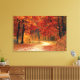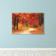 Un pintoresco camino de grava y arena a través de un hermoso bosque de magníficos troncos de árboles negros y carboníferos coronados con vibrantes colores de hojas de otoño de rubí, oro y citrina!