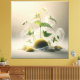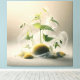 A sculptural botanical scene featuring serrated green leaves rising from soft moss forms, accompanied by smooth spherical elements and gentle mist. The minimalist background and warm light create a calm, contemporary atmosphere that blends natural beauty with architectural clarity—perfect for modern interiors, studios, and gallery‑style spaces.