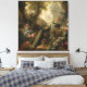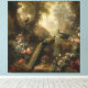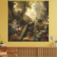 Lienzo Botánico: tres pavos reales en jardín inglés
