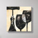 © Daphne Brissonnet / Wild Apple. La imagen incluye una botella de vino y dos vasos pintados de negro sobre un fondo color melocotón. También hay un abrebotellas de vino en la imagen.