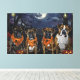 Descanse el espíritu espeluznante con este inquietante diseño de Halloween que presenta una manada de perros bajo un cielo oscuro, iluminado por la luna, rodeados de bates voladores y calabazas brillantes. Perfecto para los amantes de la diversión con sus peludos amigos.