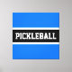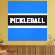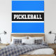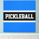 Este divertido diseño presenta grandes letras deportivas dentro de una banda ancha negra realzada con rayas blancas sobre un fondo azul brillante. Los colores y el texto de PICKLEBALL de este diseño de plantilla se pueden personalizar.