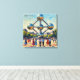 Experience the futuristic wonder of Brussels through this vibrant impressionist celebration of one of Europe's most extraordinary landmarks. The iconic Atomium towers majestically against a luminous sky painted in soft blues and creamy yellows, its gleaming metallic spheres reflecting golden sunlight and capturing the essence of mid-century modern ambition and innovation. Below this architectural marvel, elegant figures in vintage clothing—women in jewel-toned dresses, men in crisp shirts—gather in the expansive plaza, their colorful silhouettes creating a human tapestry of joy and discovery. Lush green trees frame the composition while classic European buildings provide stately architectural context, grounding this symbol of tomorrow in the heart of the old continent. The artist's bold, expressive brushwork brings dynamic energy to every element: shimmering reflections on the spheres, warm shadows across sun-drenched cobblestones, and swirling skies that seem alive with possibility. Perfect for those who admire architectural icons, mid-century design, European heritage, and art that celebrates human achievement, this stretched canvas transforms your space into a portal to Brussels' most transformative era.