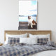 Lienzo bulldog feliz sentado en cubierta cerca del lago