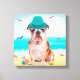 El perro lindo sentado en la playa es un regalo perfecto para alguien que ama esta raza de perro.
