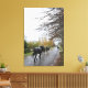 Lienzo Caballos caminando por la calle Oak bajo la lluvia