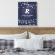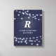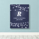 A tu novia y novio favoritos le encantará este lienzo de personalizable que representa su día de boda o aniversario. Cadenas de luces blancas rodean un monograma, nombres de pareja y fecha de boda u otra ocasión especial. Puede cambiar el color de fondo marino haciendo clic en el botón Personalizar. Hace un regalo hermoso, moderno y personalizado.