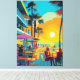 Relájese en la energía de una velada tropical con este atrevido arte pop que cuenta con una cafetería frente a la playa al atardecer. Los colores vivos y el estilo retro reflejan la esencia del ocio costero y el encanto tropical. Perfecto para los amantes del pop art, de las vibraciones veraniegas y de la decoración moderna y colorida para alegrar el espacio.