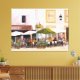 Una cafetería en Provenza en una calle del pueblo llena de clientes que desayunan una mañana soleada. Aquí se muestra un gran tamaño de lona de 36 x 48. Disponible en tamaños más pequeños, elija su tamaño. Arte francés por REIFSNYDER©