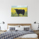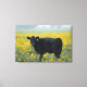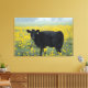 Lienzo Calf negro en un campo de girasoles