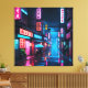 Arte de estilo lofi que exhibe una pequeña calle en Tokio durante una noche lluviosa, con luces de neón iluminando el entorno.