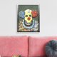 Esta copia de un cuadro original de "SANZEi" Pointillism Gouache en color está ahora disponible en una hermosa pantalla de lona. Callous the Crying Clown fue pintado por Santos "Sanzei" López como un proyecto artístico en 1998. Esta pieza de color punintillismo / gouache presenta a un payaso muerto llorando que está pagando por su cruel indiferencia por la sociedad. La mandíbula metalizado es simbólica de la fría y rígida desconexión que representan los medios sociales/internet, la lágrima sobre la cara del cráneo representa el arrepentimiento tras el hecho. El pelo azul y rojo representa la influencia de dos grupos políticos narcisistas, y el cráneo cráneo aplastado y rayado representa el constante encubrimiento y patchwork causado por los años de vivir dentro de un sistema fracturado. Siga a Sanzei en twitter - SANZEi333