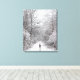 Árboles cubiertos de nieve en el bosque con sendero de senderismo.