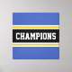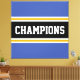 Este diseño colorido y deportivo presenta el texto en negrita de CHAMPIONS dentro de una amplia franja de carreras horizontal en el centro negro con rayas amarillas y blancas adjuntas contra las franjas de borde exterior azul atlético. Los colores y el texto de este diseño se pueden personalizar.