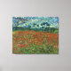 Poppy Field de Vincent Van Gogh, aceite sobre lienzo 1890, es un paisaje pintado de vastos campos de brillantes flores rojas de amapola que se extienden hasta las distantes líneas de árboles y las colinas ondulantes. Ocupado, agitado, aplicado de forma rápida y vigorosa, pinceladas de colores contrastantes y complementarios llevan el ojo del espectador incesantemente alrededor de la composición, lo que da una sensación de apreciación de la belleza natural y de gran perturbación. Los puntos de violeta violeta violeta y otros colores definen otras flores en primer plano, así como los techos redondeados de los árboles que intersectan el cielo giratorio en los bordes del campo. Vincent Van Gogh (1853-1890) fue un pintor holandés del movimiento post-impresionista conocido por sus dibujos audaces y expresivos, sus brochas y sus colores intensos y acentuados. A principios de la edad adulta Van Gogh trabajó como vendedor de arte, profesor y pastor antes de comenzar el estudio de dibujo y pintura a tiempo completo a finales de los 20 años. Influenciado por Rembrandt, la escuela Realistas del siglo XIX y Barbizon, las primeras pinturas de Van Gogh mostraron estudios de trabajadores y campesinos en tonos tierra sombríos. Al mudarse a Francia en 1886, Van Gogh se reunió con las sorprendentes innovaciones de los pintores impresionistas y comenzó a aplicar su enfoque al color y a la materia, que continuó en el estilo maduro por el que el artista es más conocido. Van Gogh produjo muchos cientos de dibujos y pinturas que incluían retratos, paisajes, pinturas de vida y flores y numerosos autorretratos que se convirtieron en una influencia dominante en el arte moderno del siglo XX y lo convirtieron en uno de los artistas más populares de todos los tiempos.