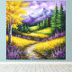 Lienzo Campos amarillos, flores, montañas con nieve