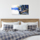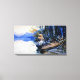 La serena pintura de C.M. Russell de un indio americano sentado cerca de su canoa cerca de un lago en las Montañas Rocosas.