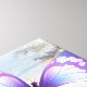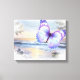 Hermosa y serena playa al amanecer y un cierre de una mariposa de lavanda - los colores suaves son suaves y tranquilizantes.