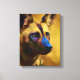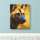 Una pintura digital que combina el hiperrealismo con la abstracción audaz y contemporánea. Este retrato cautivador de un Perro Salvaje Africano muestra un choque armonioso de tonos vivos de azules profundos, ocres dorados y verdes eléctricos que alientan la vida en cada cadena y sombra de piel. Las pinceladas texturadas, casi cubistas, añaden profundidad y movimiento, transformando un simple perfil canino en una declaración de belleza cruda e intensidad emocional.