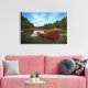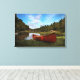 Canoa roja en un caluroso día de verano en la orilla del lago del diablo, cerca de Minden, Haliburton, condado, Ontario, canadá