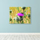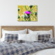 Arte de tela mostrado con una foto impresa de una abeja en el cardo.
