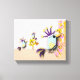 Este lienzo presenta mi colorido y divertido diseño de tres pájaros imaginarios con plantas imaginarias en el fondo. Agradable para alegrar cualquier pared de la casa.