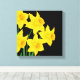 El arte de lienzo envuelto se muestra con una impresión gráfica de daffodils amarillo bonito en un color de fondo negro. Personalizar este artículo o compra tal cual. Imagen de stock