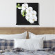 El arte de lienzo envuelto se muestra con una impresión gráfica de orquídeas blancas bonitos en un color de fondo negro. Personalizar este artículo o compra tal cual. Imagen de stock
