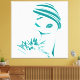 Agradable tema retro de niñita en tonos cítricos y blancos. Una mujer hermosa y sensual cara y cuello. Dibujo divertido, retro.