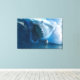 Con unas vistas impresionantes al océano, las olas son grandes y en la ola se ve una cara de tiburón. Un surfista surfeando a través de la ola frente al gran rostro de tiburón... este es un bonito cuadro Imprimir en este lienzo envuelto