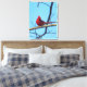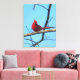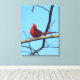 ¡El luminoso cardenal rojo del norte sobresale en contra del cielo azul de verano! ¡Buena foto para mostrar este pájaro popular!
