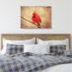 Un cardenal sentado en mi árbol Mimosa esperando su turno en el alimentador de aves.