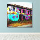 La destrucción urbana abandonó la casa con pintadas de pintura en aerosol coloridas. Casa con ventanas rotas y puertas abiertas. Belleza en destrucción. Los espacios perdidos o la IA post apocalíptica generaron obras de arte.