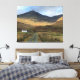 Gran impresión de lona que muestra las vistas de una casa de campo aislada en la isla de Mull en Escocia. Escena escocesa con una casa de campo pintada de blanco a la sombra de las montañas.